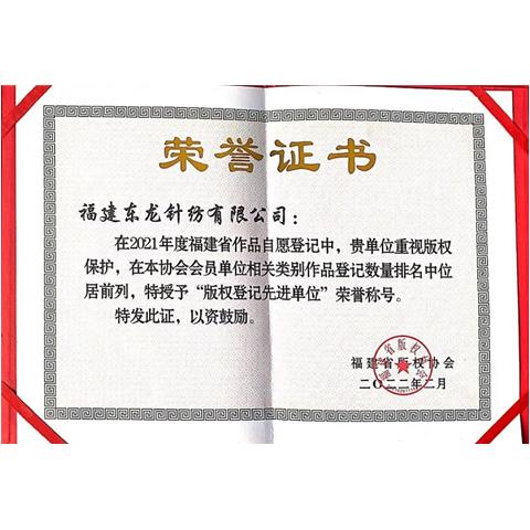 福建東龍針紡有限公司榮獲福建省“版權(quán)登記先進(jìn)單位”