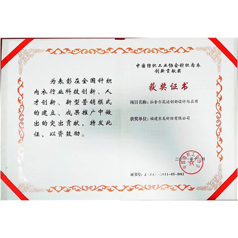 中國(guó)紡織工業(yè)協(xié)會(huì)內(nèi)衣創(chuàng)新貢獻(xiàn)獎(jiǎng)