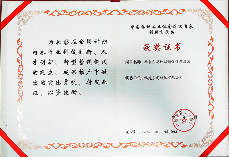 中國紡織工業協會內衣創新貢獻獎/2018-09-04